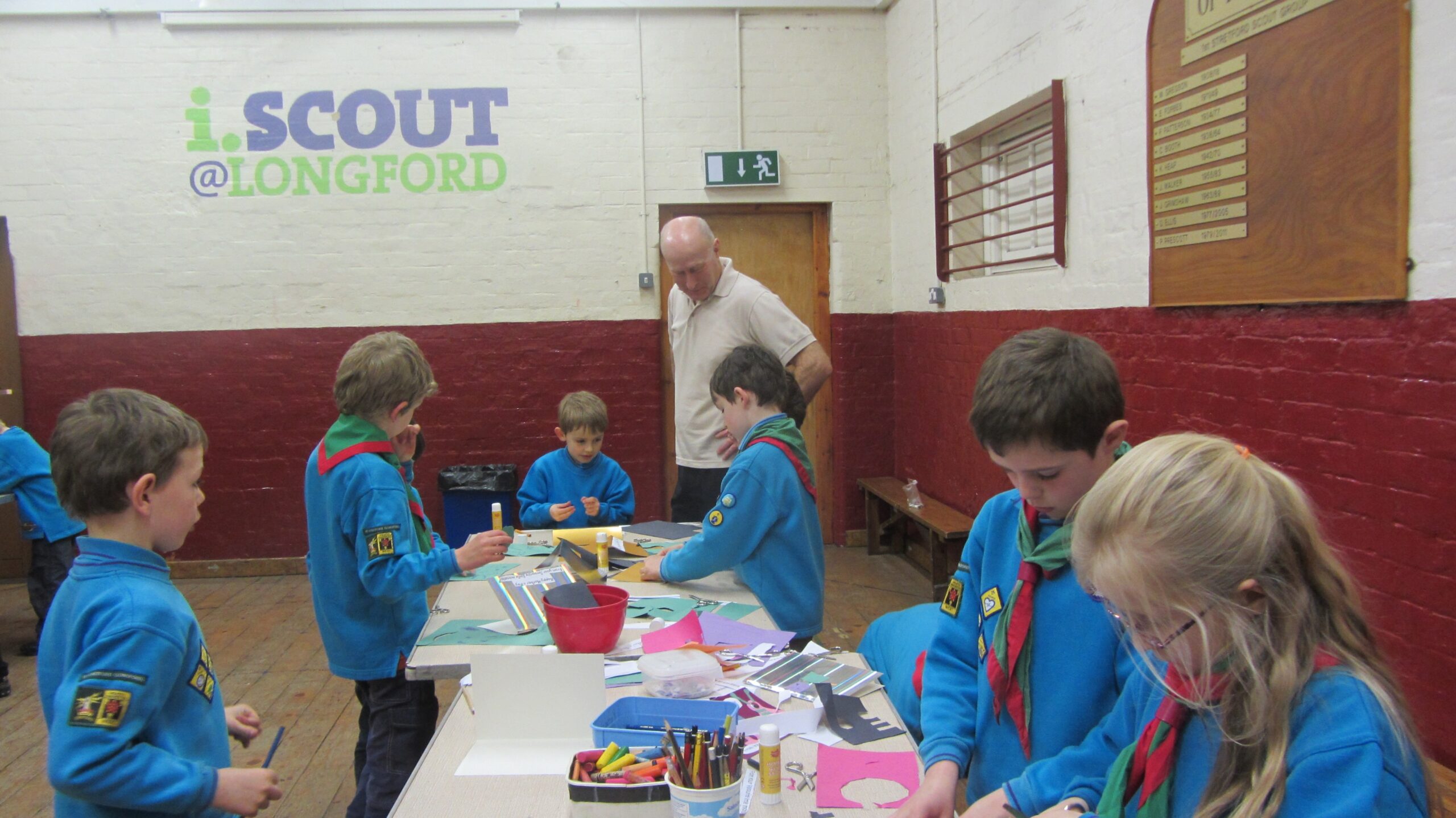 This week the Beavers were involved in craft. I am forbidden from revealing the exact items made, but suffice to say there was a lot of cutting out, crayoning, gluing and even the use of a glue gun – in the interest of health and safety I must add that these were used by responsible adults to help the children.