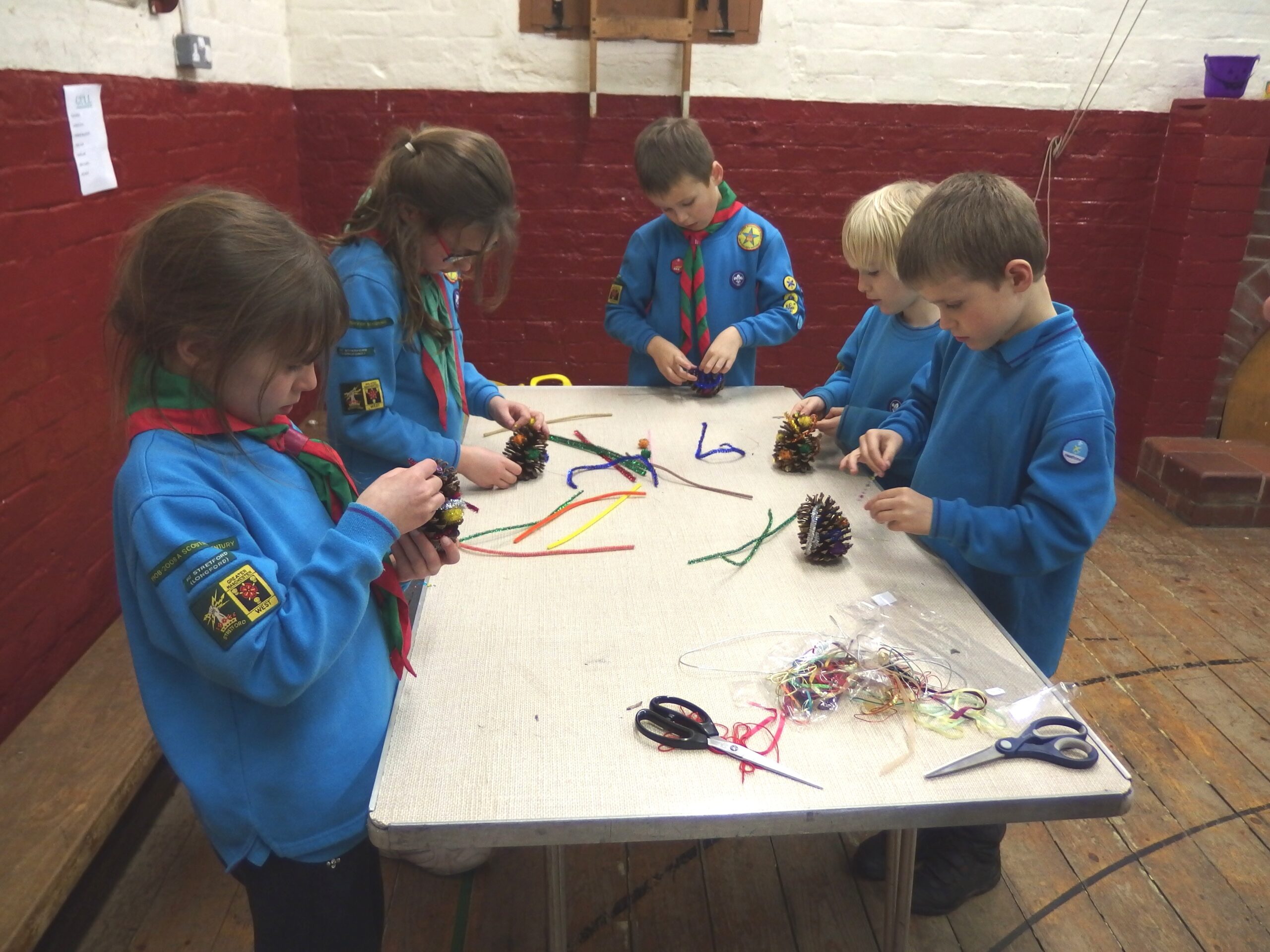 This week was slightly different in that each Colony was making something different. The Tue Colony were making a Christmas decoration using a pine cone as the base. This was then decorated using “jewels”, colour pipe cleaners etc