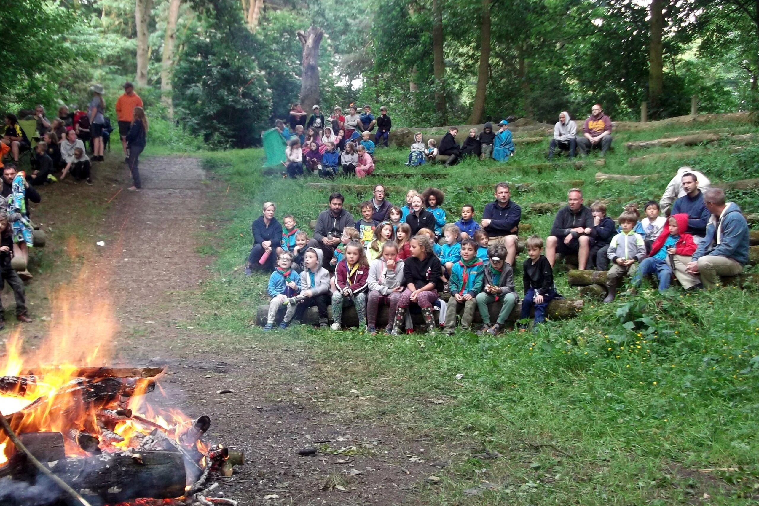 Twenty three Beavers and 10 adults spent a night under canvas this last weekend. It was a marvellous introduction to Scout camping with fine, warm weather and a good variety of activities to keep them occupied. They were able to try archery, fire lighting and cooking, grass sledging, pioneering as well as a Camp Fire. A number of badge-work boxes were ticked it is just up to us to get the paperwork updated. A picture taken at the camp fire is included in this item but hopefully by next Monday there will be some more pictures on the Beaver Noticeboard.