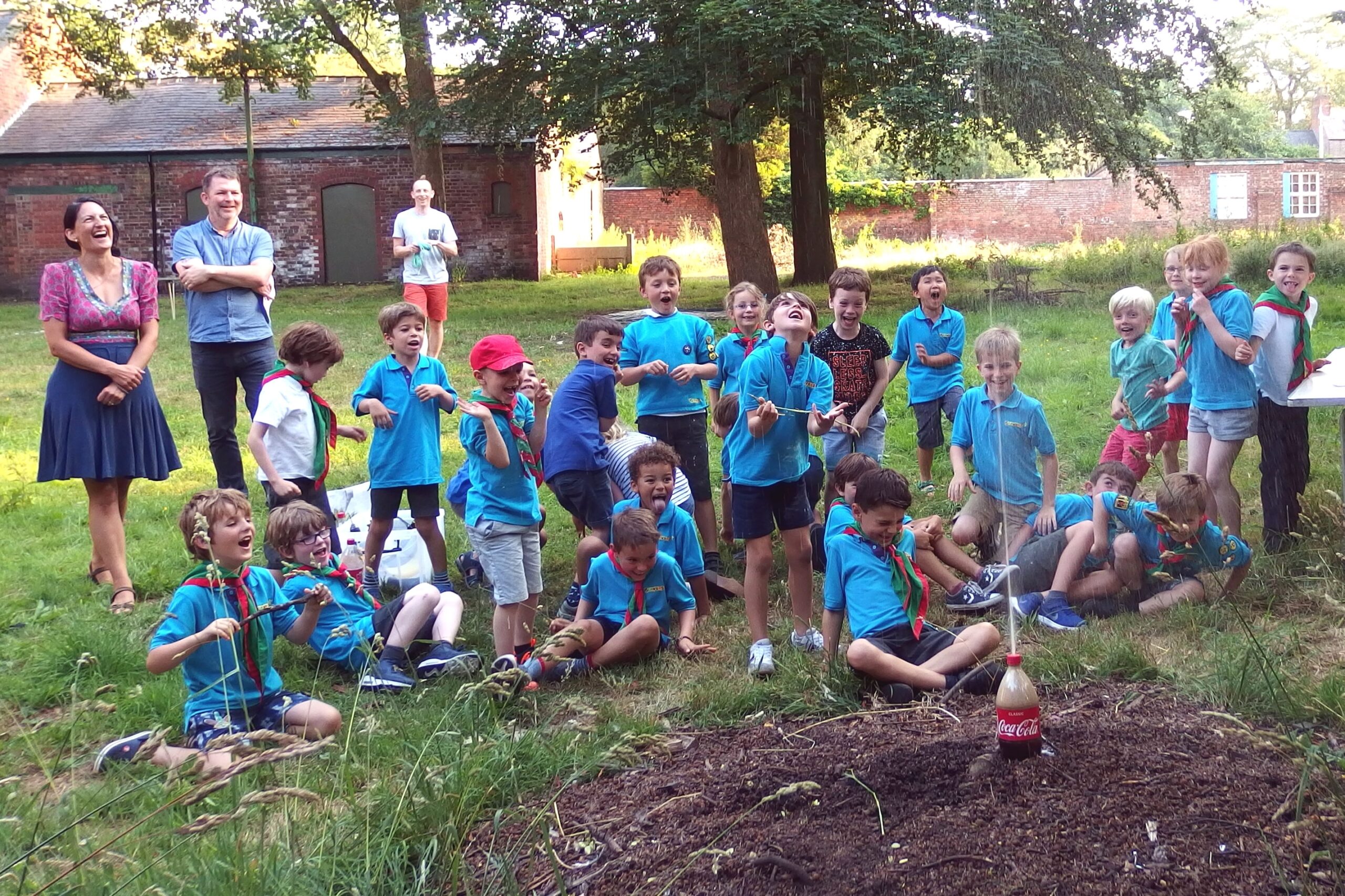 On Monday 25th June the Beavers carried out 4 experiments for this badge. One was to get peas to grow, one involved a pendulum, one involved the difference between a sold and a liquid and the most spectacular involved the reaction between two common chemicals in everyday use but not usually together.