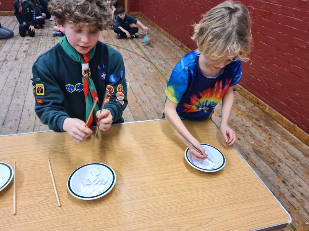 This week, both the Monday Cubs and Wednesday Cubs groups engaged in activities themed around the Chinese New Year. They crafted traditional Chinese lanterns using red and gold paper to symbolize luck and prosperity. In an adjacent activity, the Cubs participated in a chopstick relay race, where they had to transfer various small objects from one point to another using only chopsticks.The purpose of the activities was to introduce the Cubs to aspects of Chinese culture and celebrate Chinese New Year. The event also provided an opportunity for the Cubs to develop their fine motor skills and learn about the importance of different cultural celebrations.