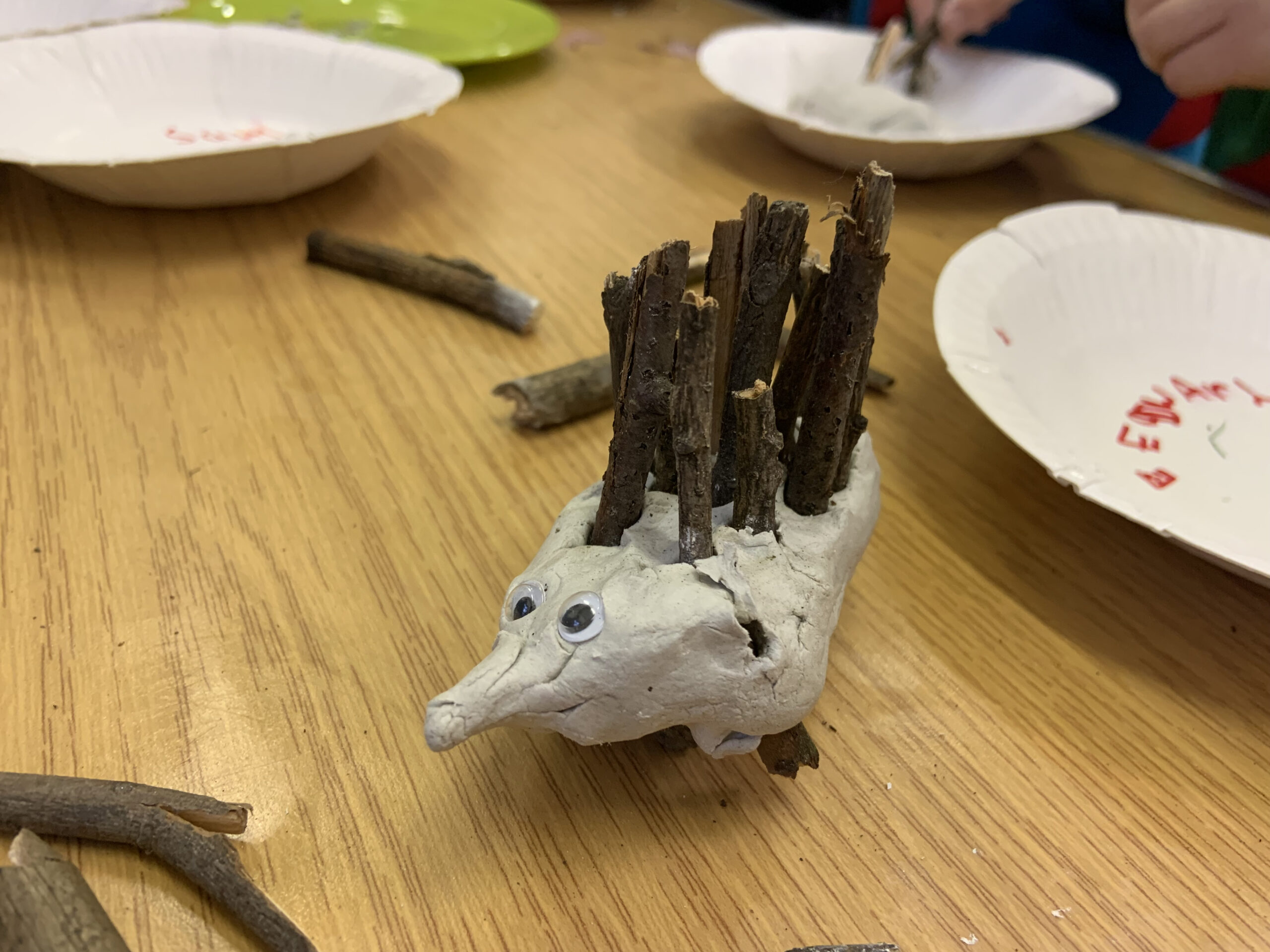 For part of our Outdoor Challenge, we had to do something using natural materials so we went out into the park to collect small twigs, pine cones, leaves and grass. Some of us were a bit ambitious with the size…