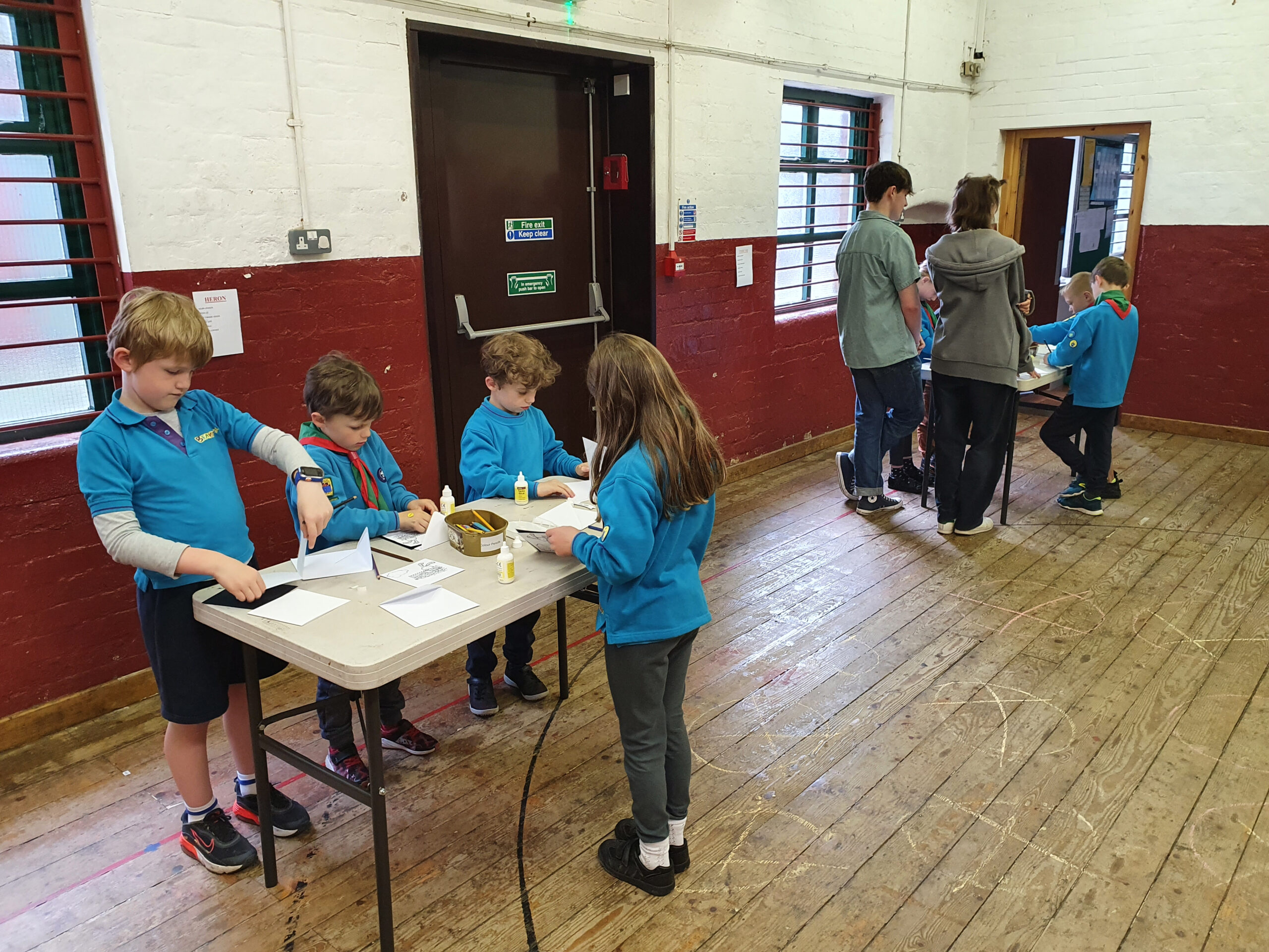 This week the Beavers are making cards either for Father’s Day or for general use. They were supplied with the card, an insert for it and a massage to be stuck on the card depending on its intended use.