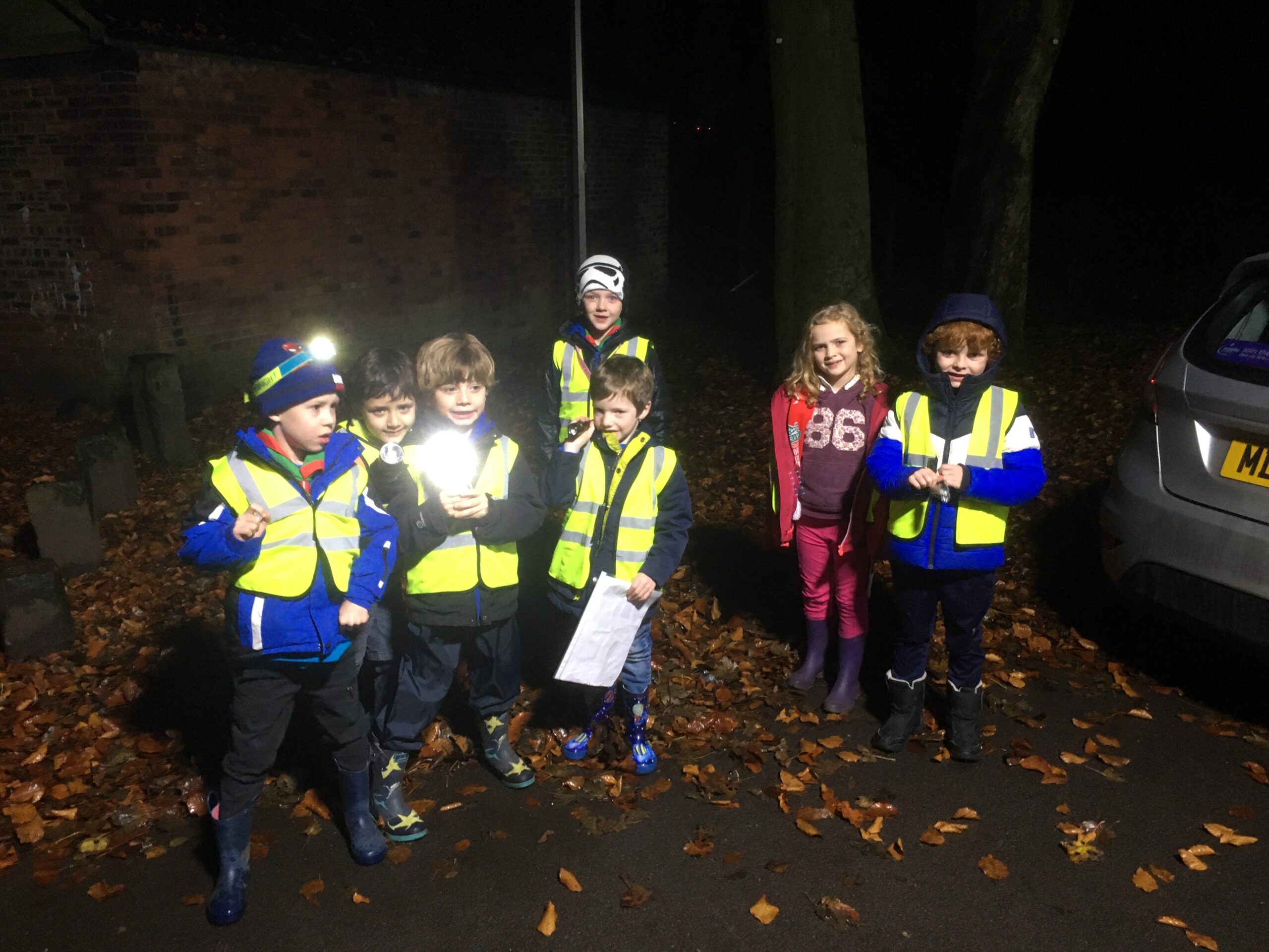 This week the Beavers went on a Night Hike around the park. They certainly enjoyed splashing through the puddles and it was very wet under foot. The rain held off until we go back to the Ranche