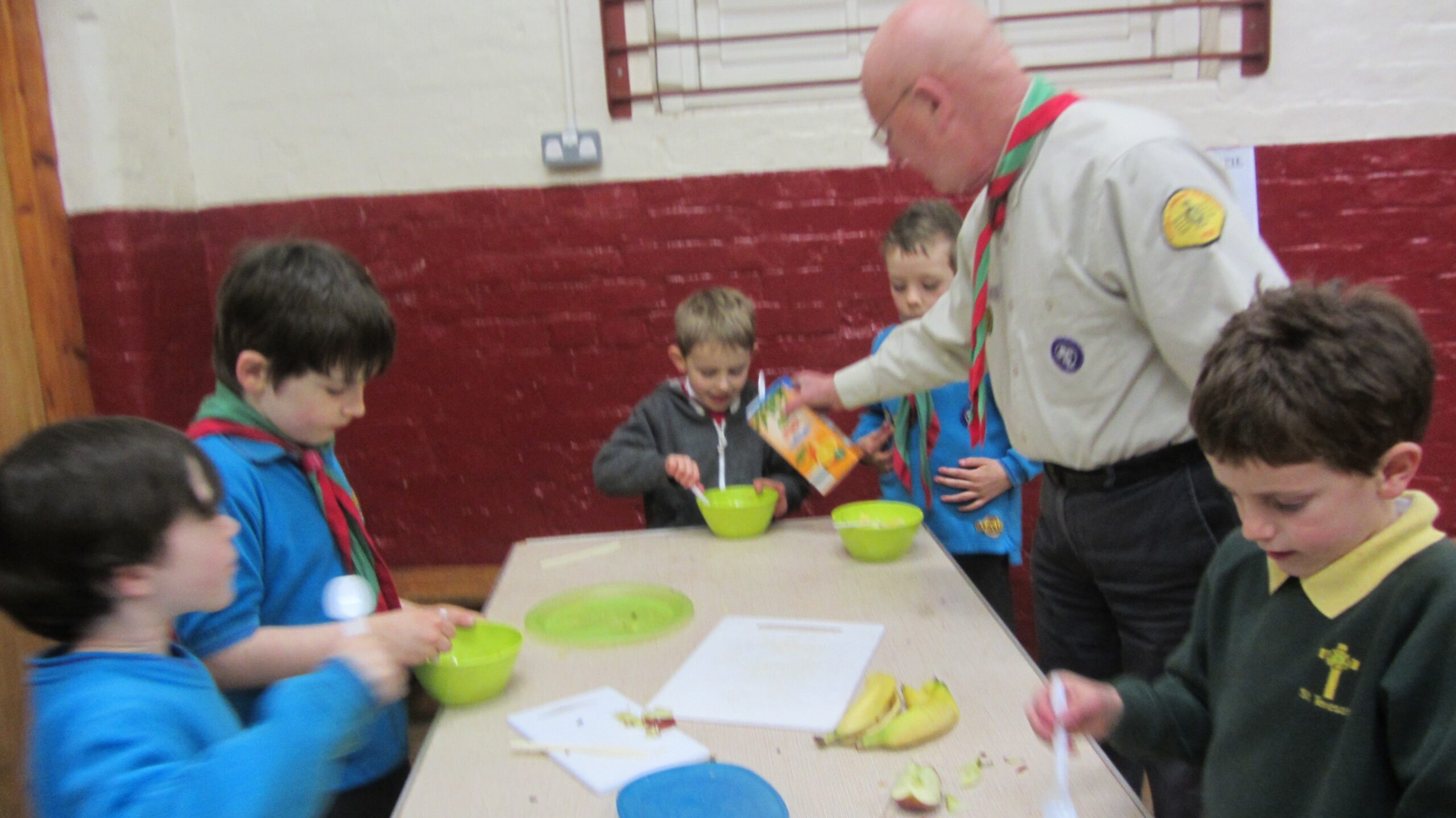To night the Beavers were making a fruit salad, which they could eat or take home. They were given oranges, pineapple, apples, bananas, blueberries, which they cut up and put in a bowl – fruit juice was then poured…