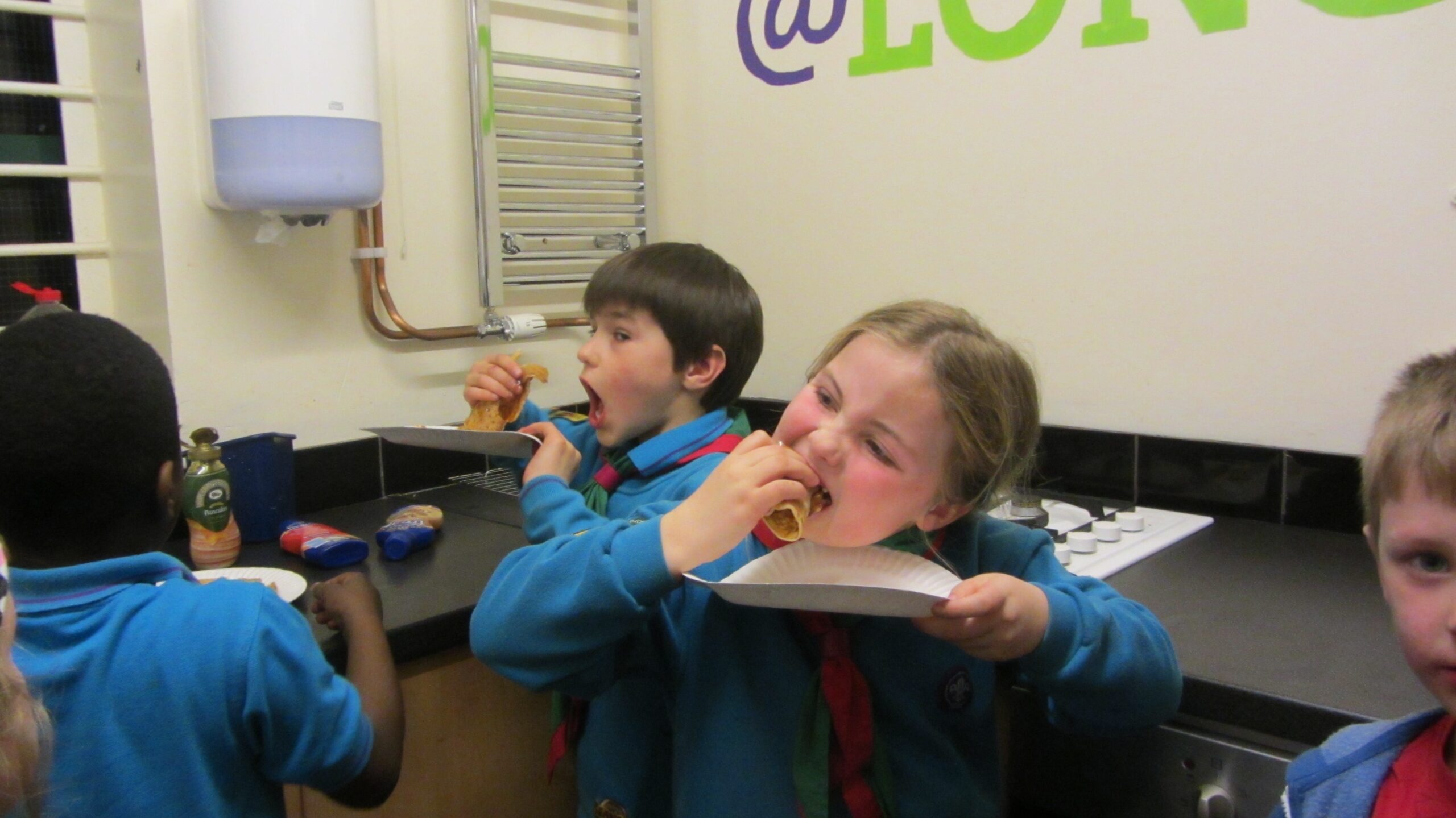 The Beavers had a treat this week – they were given a pancake and then given a selection of sauces to decorate them – Strawberry or Chocolate sauce, syrup and marshmallows. Once decorated they very quickly consumed them….